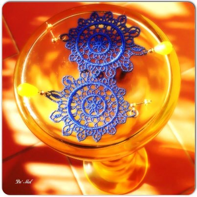 De’ Mel Cobalt blue definitely a continuous color from summer to winter here in our venetian lace earrings with blue agate and gold hardware. Divine stunning color!