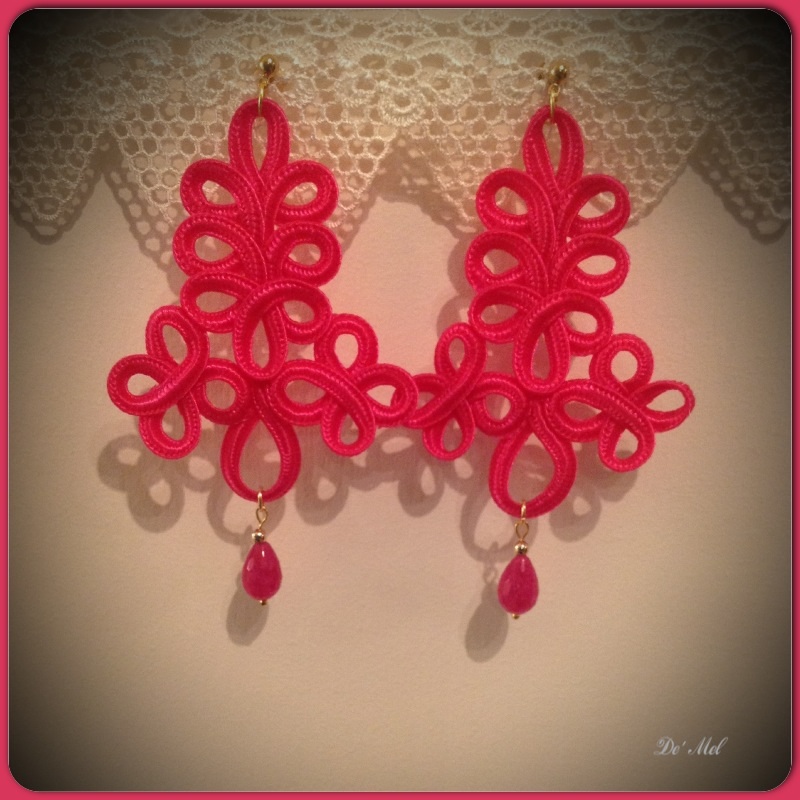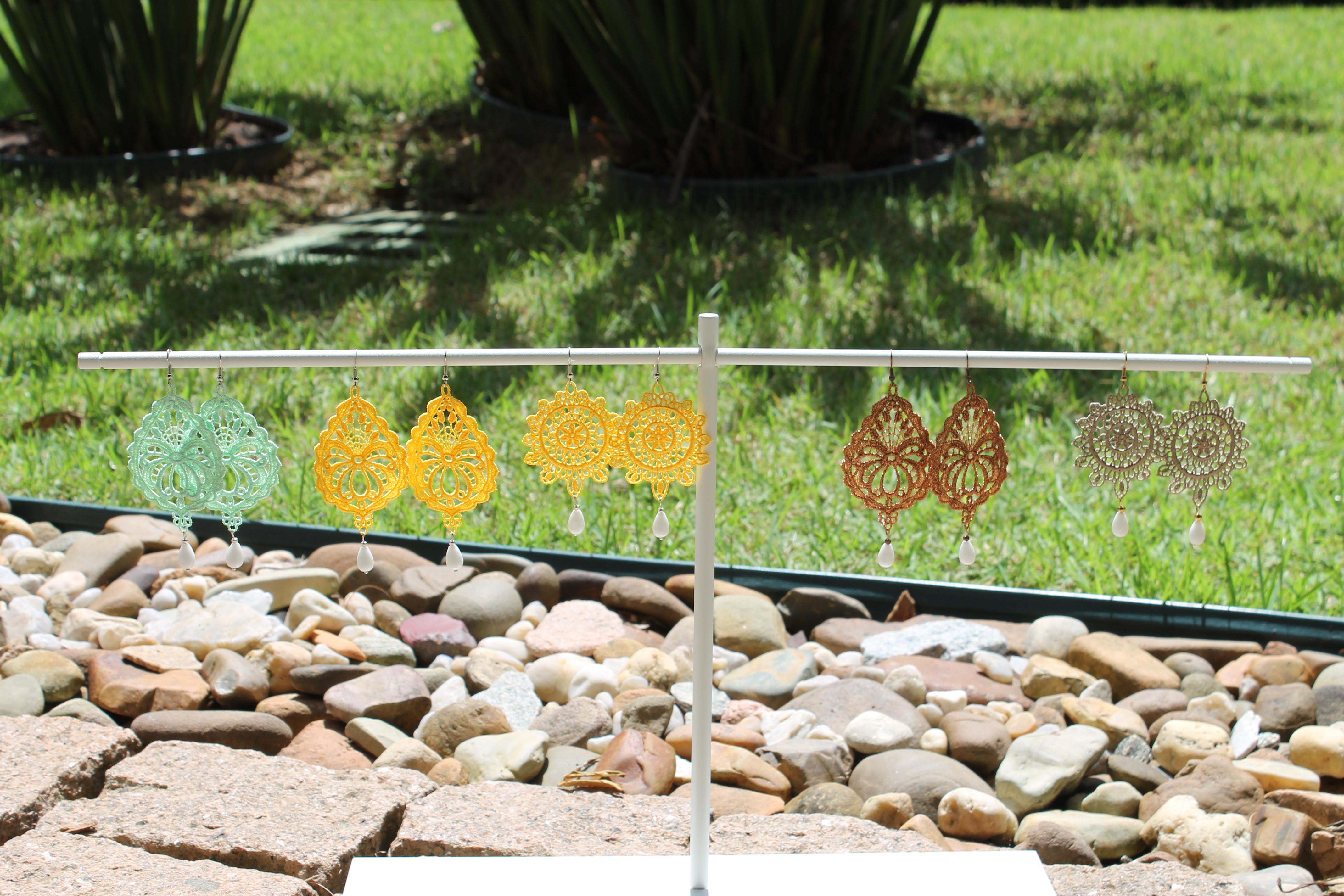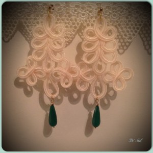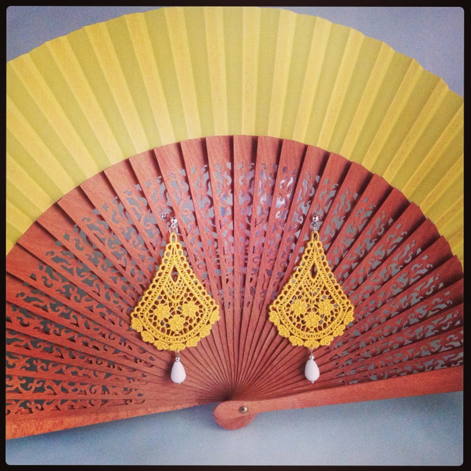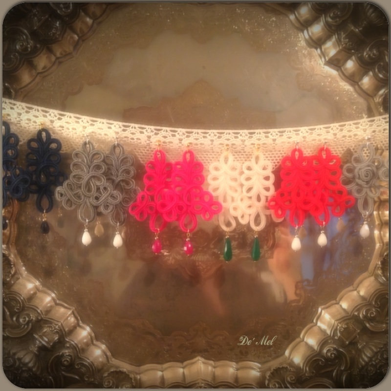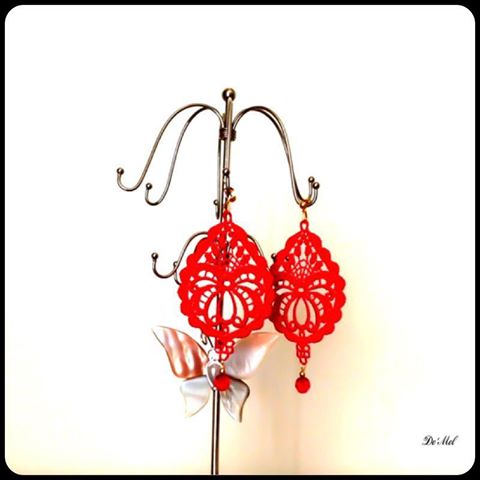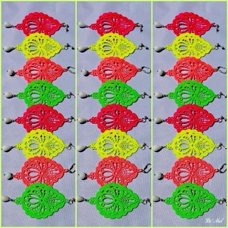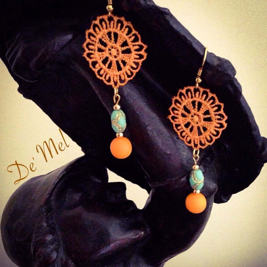 De’ Mel drop shape Venetian lace earrings now available in green, orange,yellow and pink