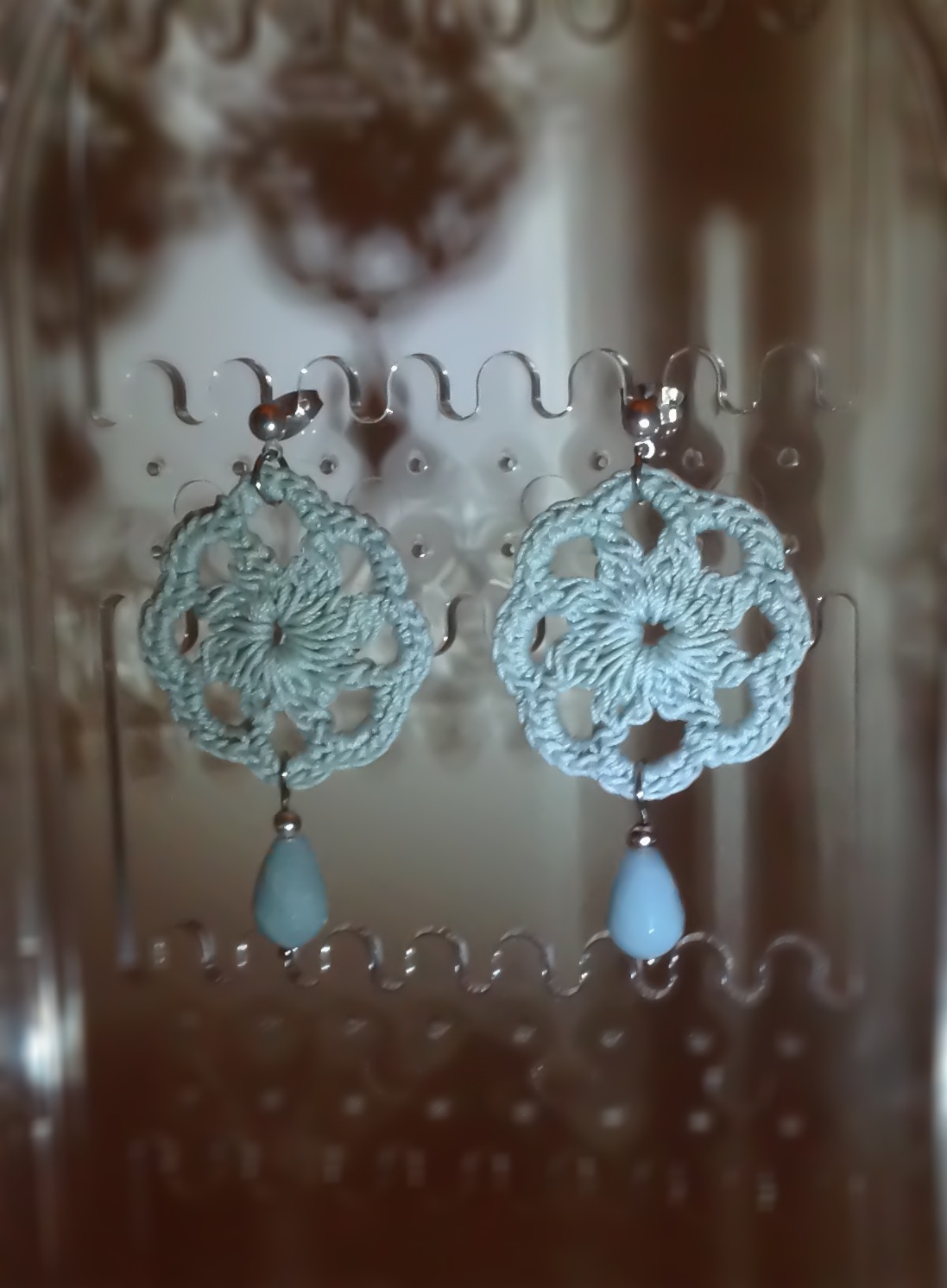 Sea foam green small hand-made crochet earrings with Brazilian Amazonite (Semi-precious stone) and silver hardware