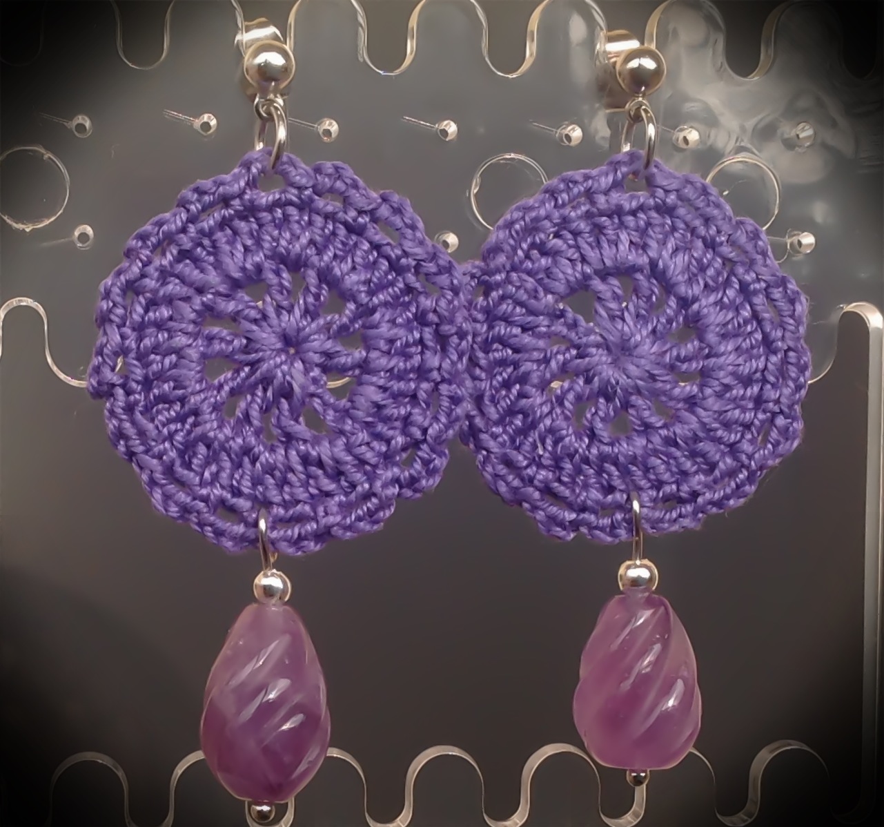 Purple small hand-made crochet earrings with Uruguayan Amethyst and silver hardware