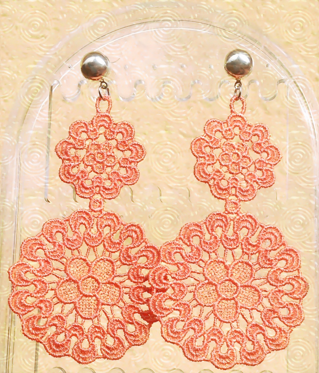 Peruvian Lucuma extra large Venetian lace earrings with silver hardware