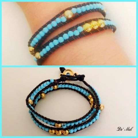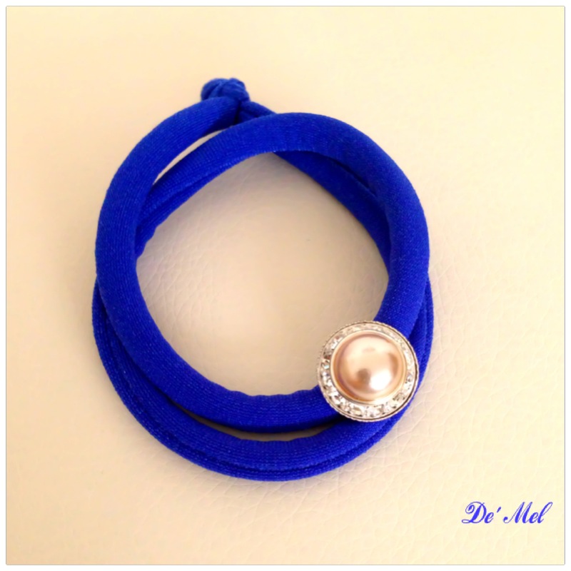 De’ Mel Lycra bracelet in cobalt blue with vintage pearl and Swarovski button