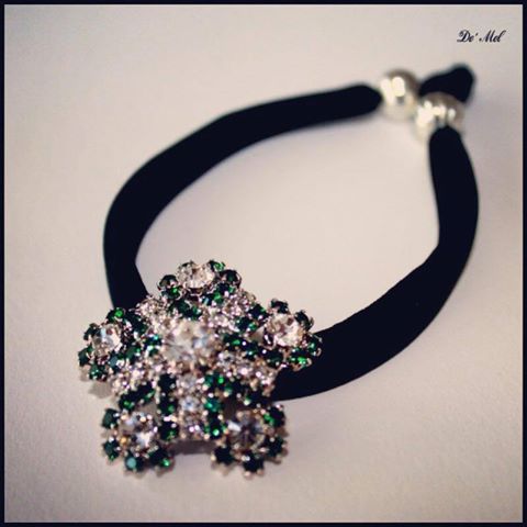 Unique piece…Vintage button black lycra bracelet with silver finishing