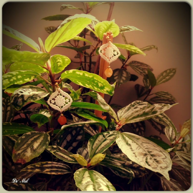 Small white Venetian lace earrings with yellow agate and gold hardware