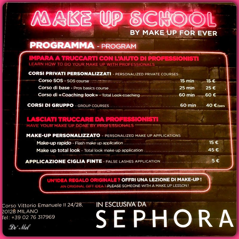 A great friend of mine gifted me with a Make-up session from Make-up Forever at Sephora in Milan. With spring finally here I thought it was a great day to go and get my make up done and look FAB (I just got bangs so a make-up course came in handy). I had no idea I was actually going to be tested and learn so much…